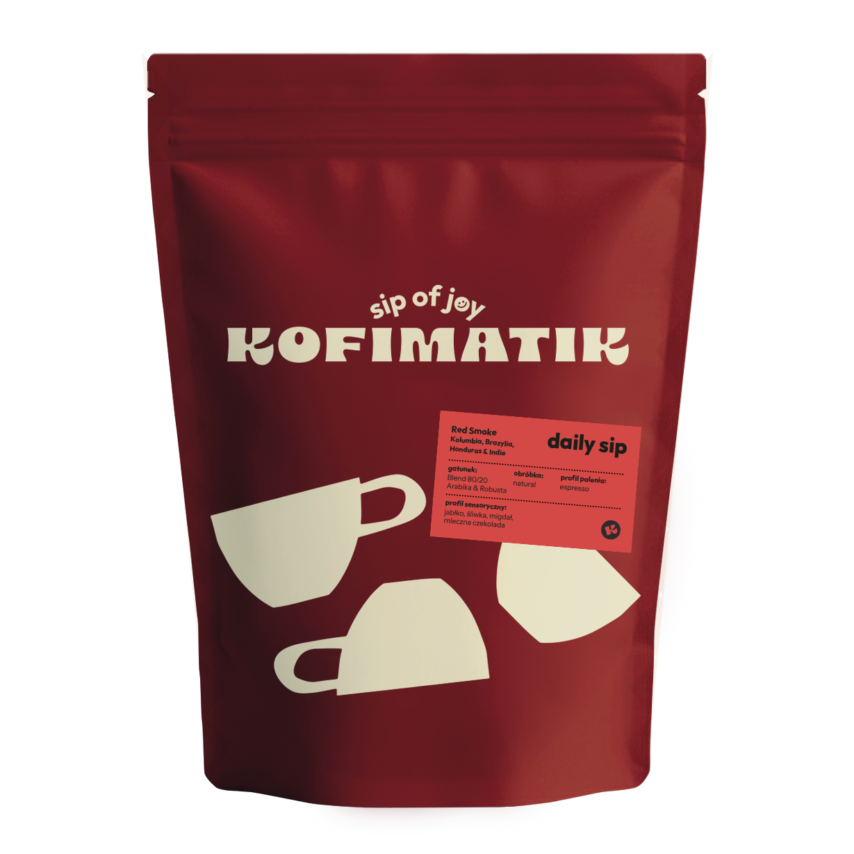 Blend stworzony na Red Smoke Festival – trzy dni muzyki, dymu i ludzi z pasją, zamknięte w filiżance. Ziarna arabiki z Hondurasu, Brazylii, Kolumbii oraz domieszka robusty Ugandy dają zbalansowaną, intensywną kawę o solidnym body i czystym profilu. W smaku: jabłko, migdał, mleczna czekolada, grejpfrut.
